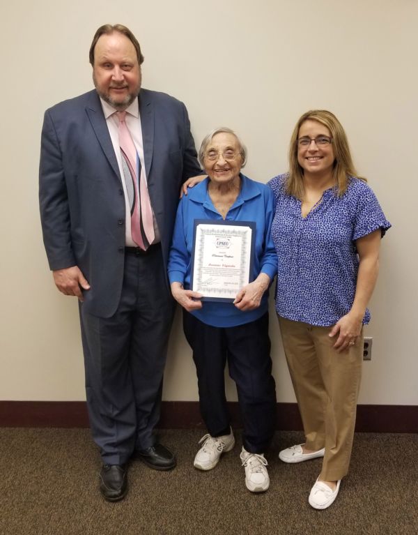 | (left to right): Roger Stolen, UPSEU Labor Relations Representative, Joanne Vignola and Antoinetta Carmody (Unit President) |